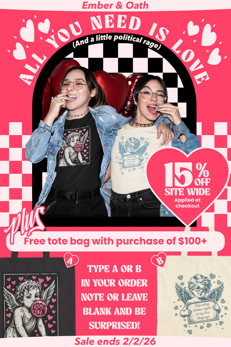 We donate 25% of net profits to mission-aligned organizations. The Collective Flame Fund: Each quarter, our community nominates and votes on an organization to receive donations funded by purchases from the Ember Fund Collection. Cause Collections: Each cause-focused collection supports two organizations working within that specific category, rotating every six months. Occasionally, we will launch single designs for predetermined organizations. Product listings will always specify which organization receives your donation. Learn more about The Collective Flame Fund and submit your nomination HERE.