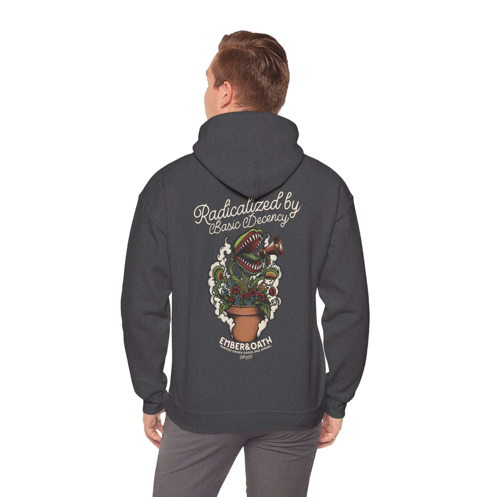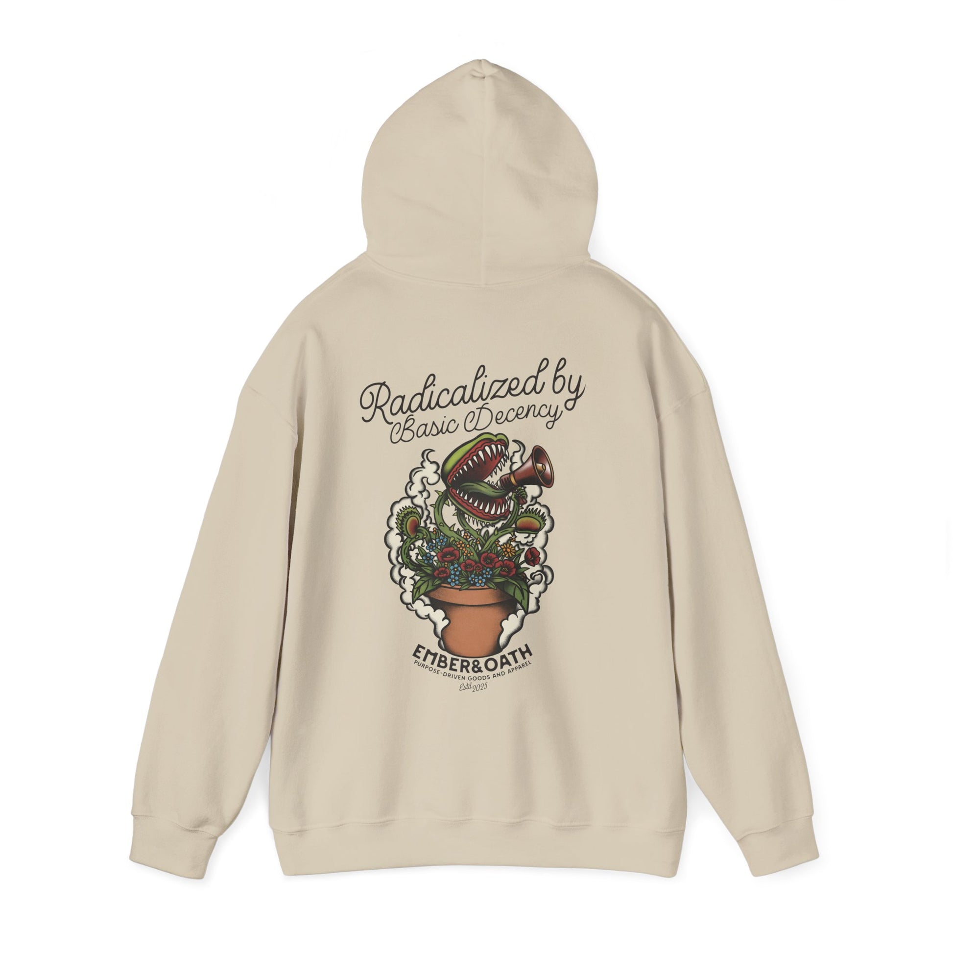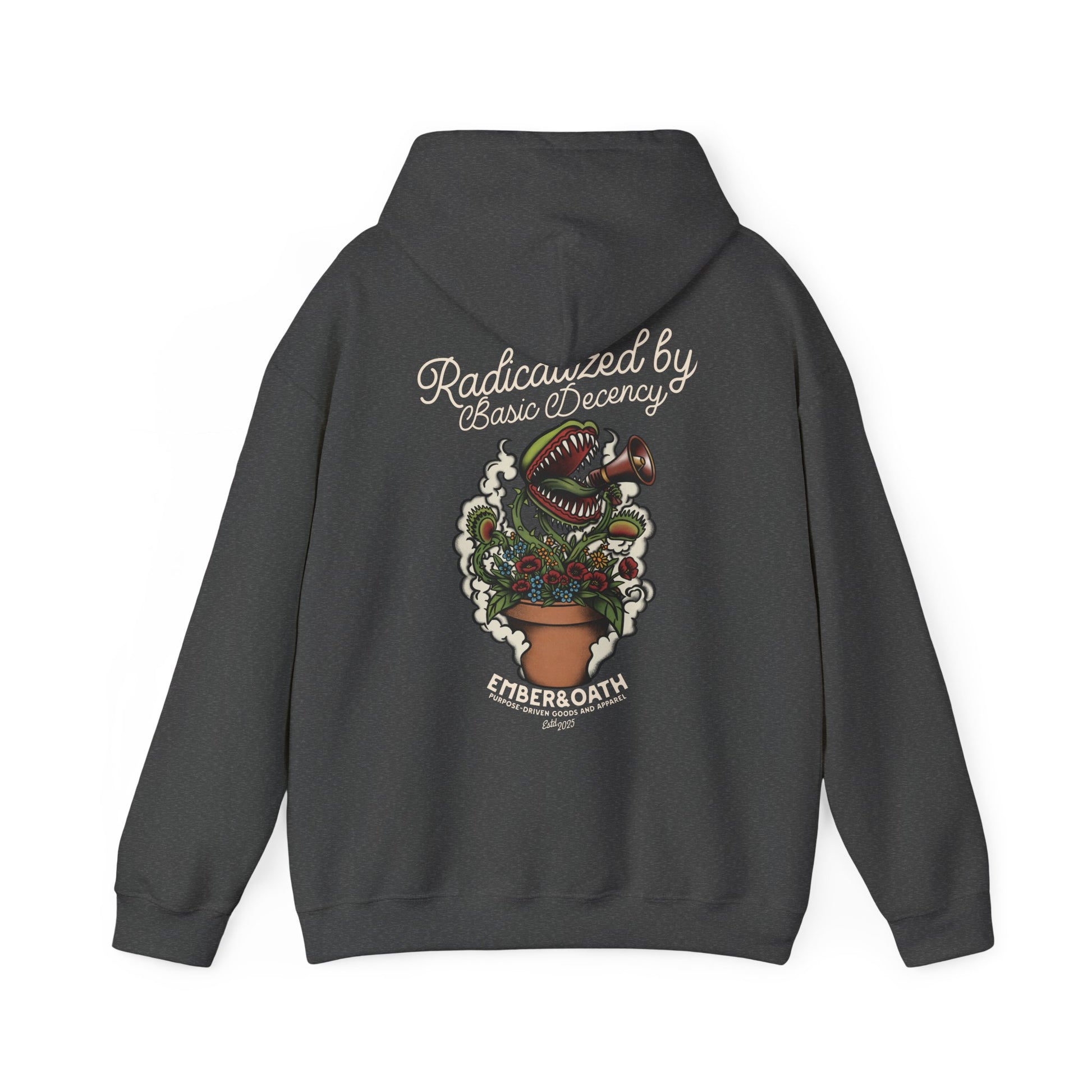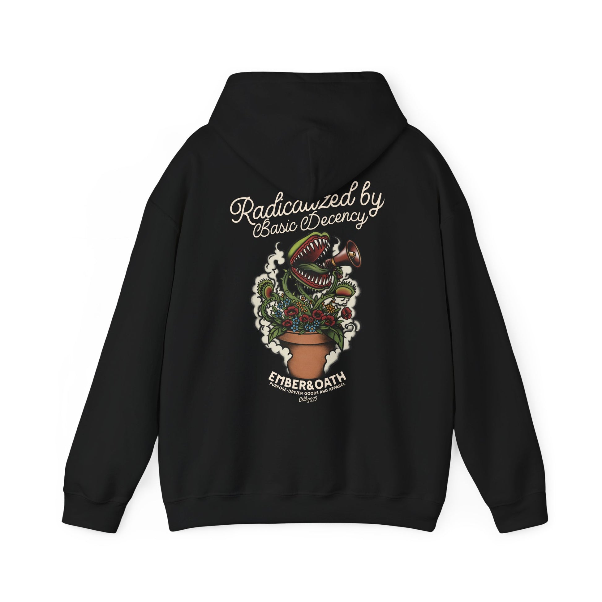 "Radicalized by Basic Decency" Unisex Hoodie | American Traditional Venus Flytrap Hooded Sweatshirt | Firestarter Fund Collection