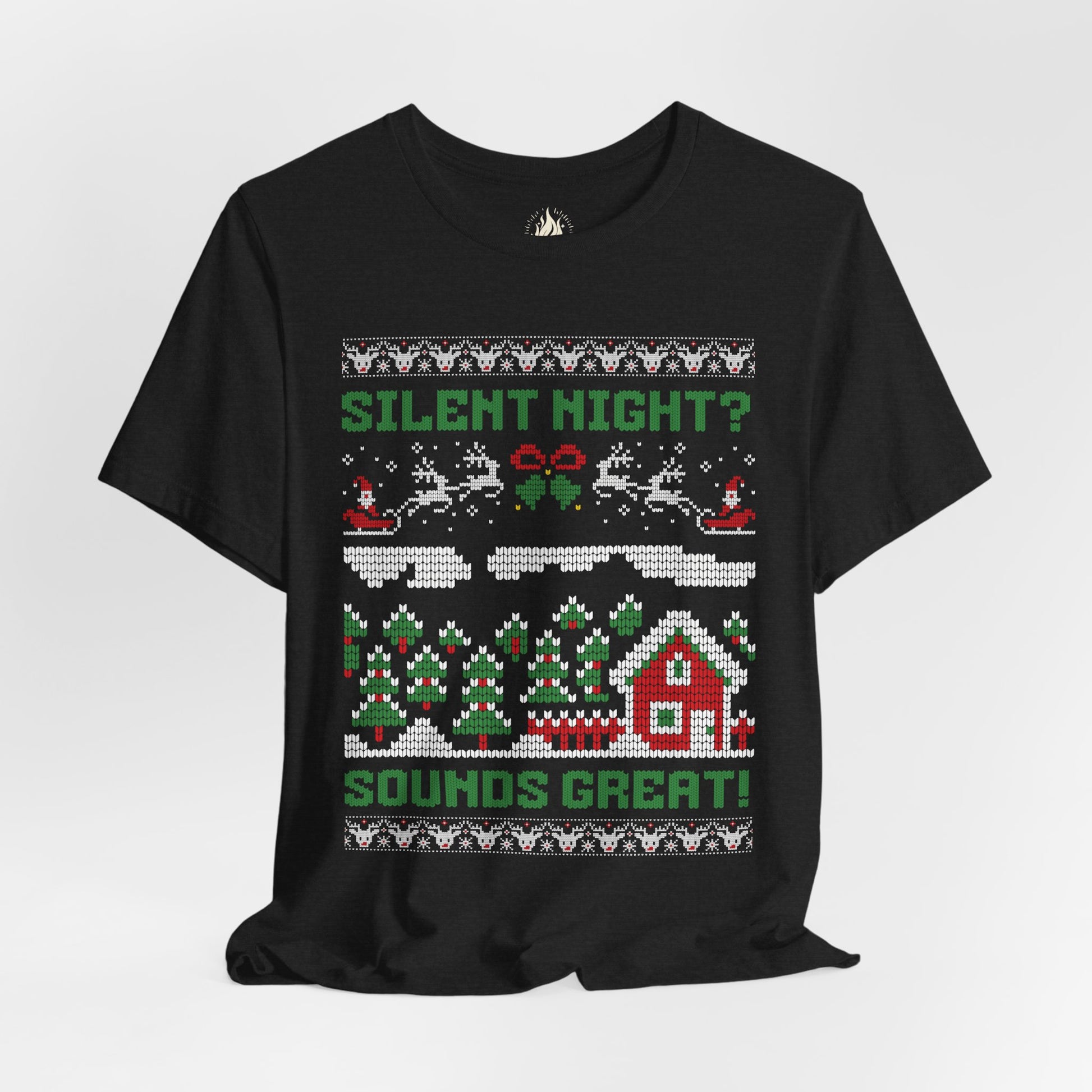 "Silent Night? Sounds Great!" Funny Unisex Tee | Ugly Christmas Shirt for the overstimulated