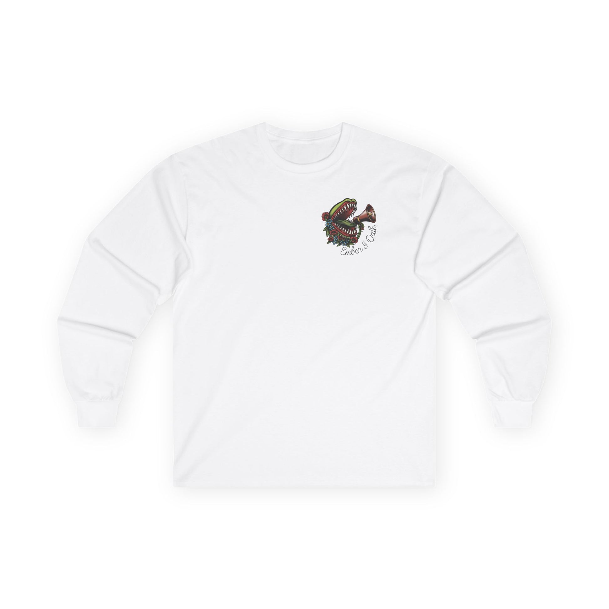 The idea behind the art is pretty simple, we don't grow alone. We grow in a community, just like this Flytrap and the wildflowers in this design. But sometimes, where you're planted can get dangerous, and someone needs to speak up. This long sleeve tee is for the people who are willing to stand up and get loud to keep their community safe. It’s a reminder that looking out for each other is the whole point!
