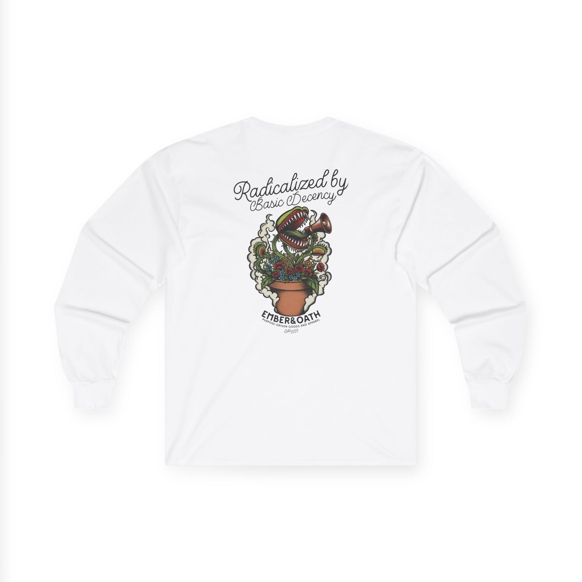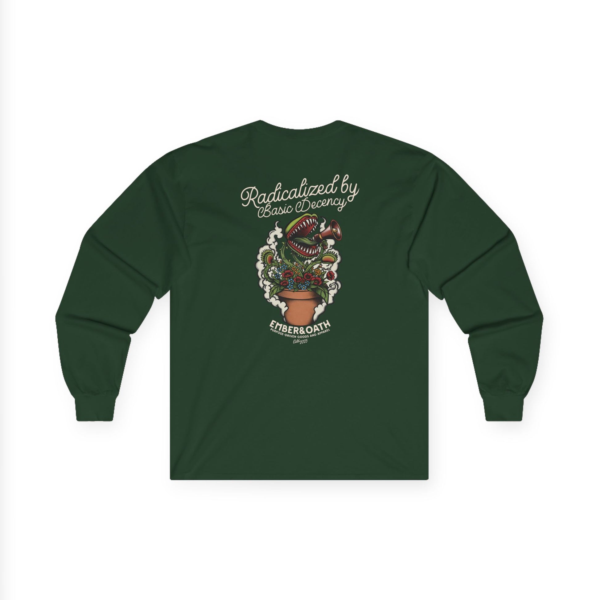 "Radicalized by Basic Decency" Unisex Long Sleeve Tee | American Traditional Venus Flytrap Shirt | Firestarter Fund Collection
