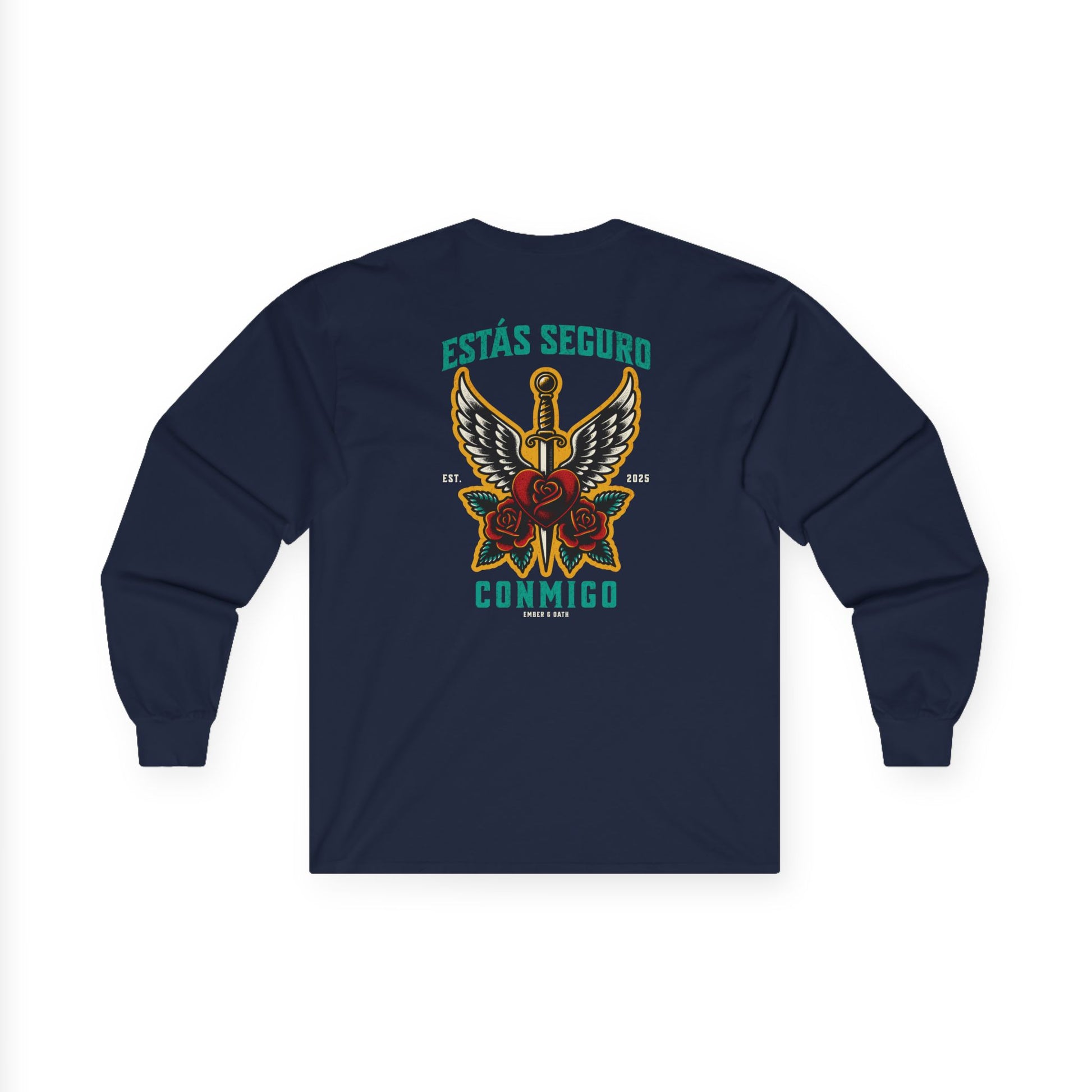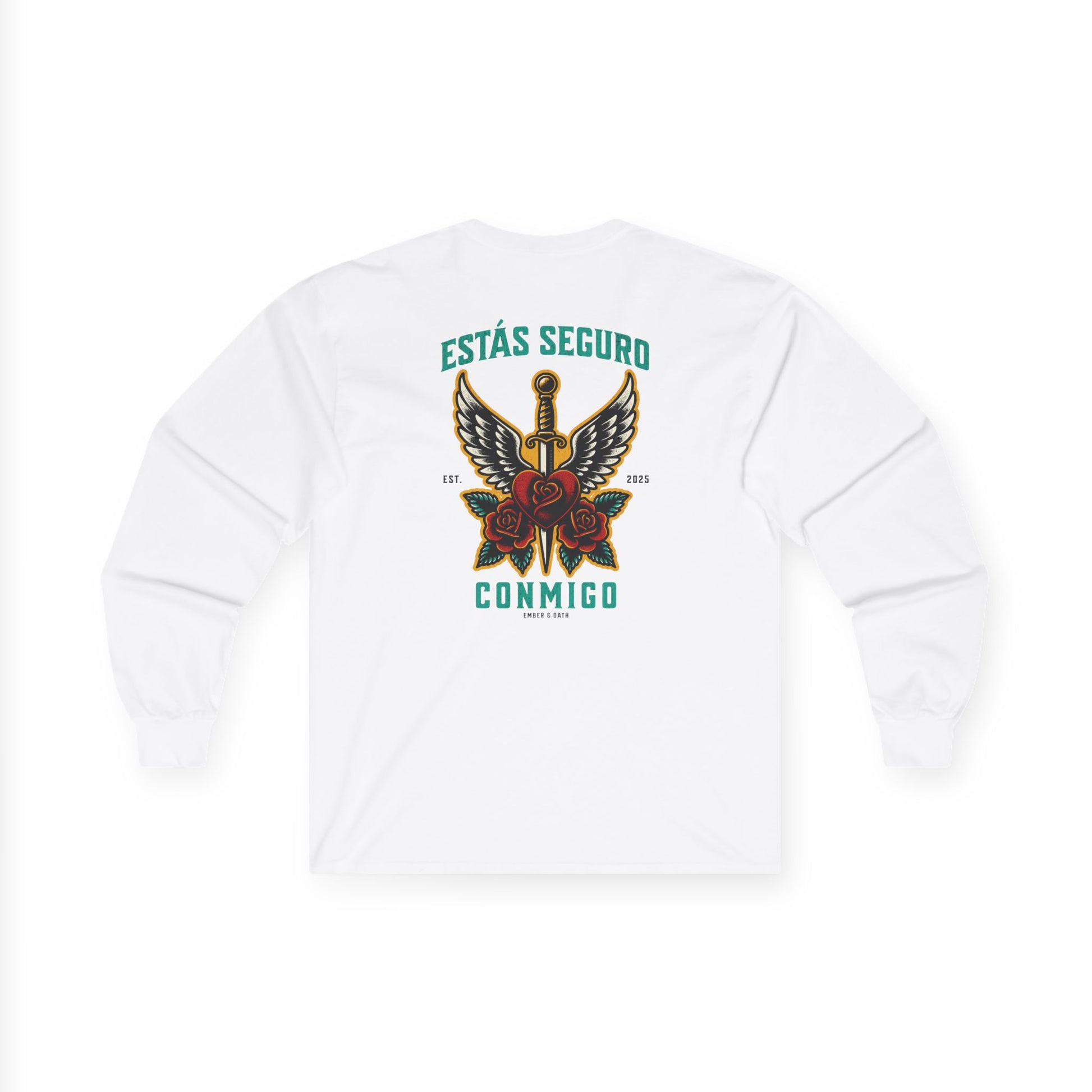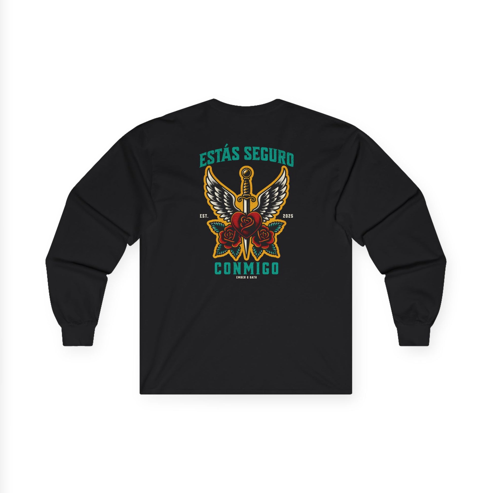 You Are Safe With Me Sword Unisex Long Sleeve Tee | Estás Seguro Conmigo Shirt | Immigrant Rights & Solidarity Collection