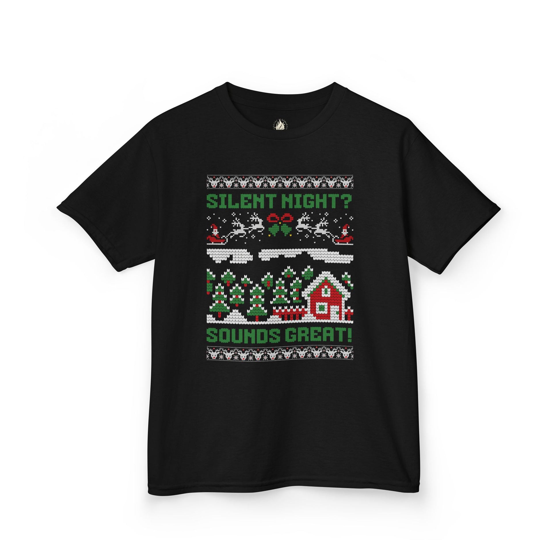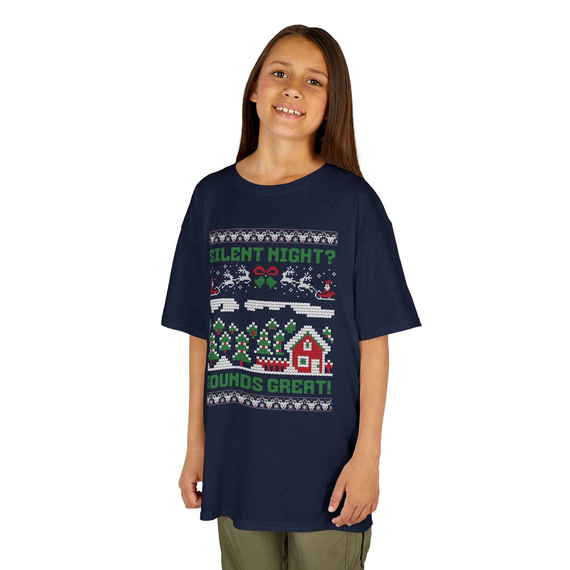 Youth "Silent Night? Sounds Great!" Unisex Tee | Ugly Christmas Shirt for the Overstimulated